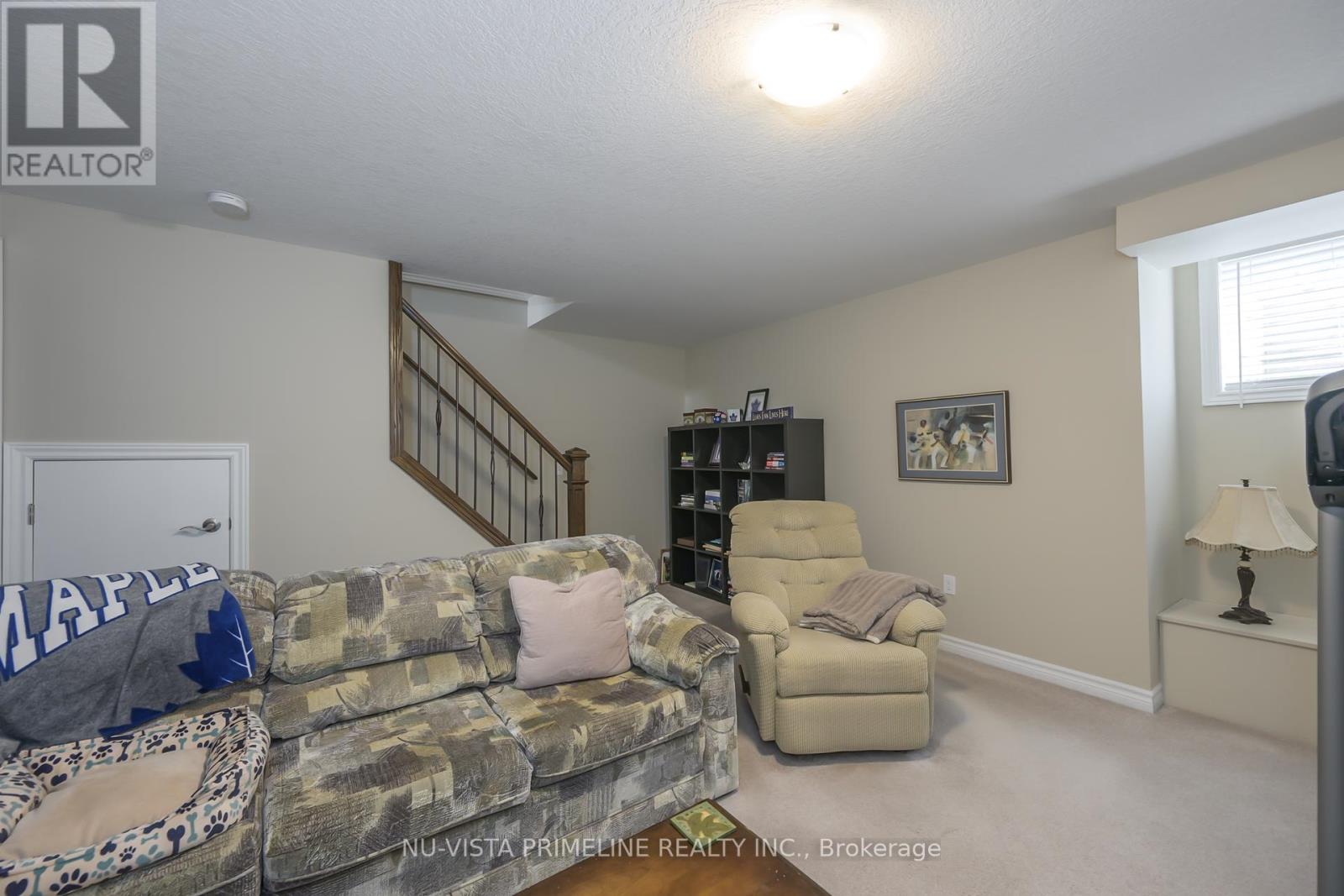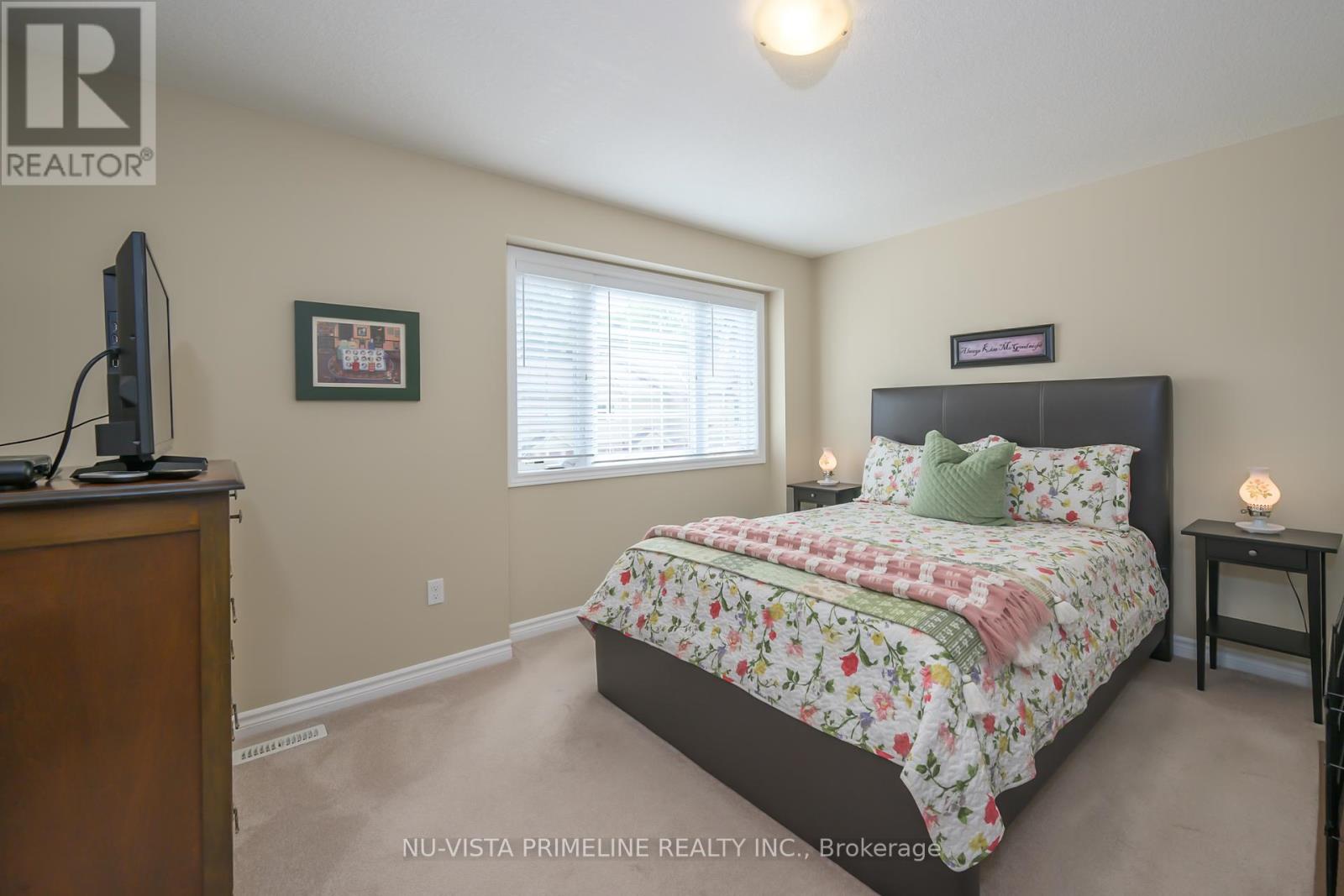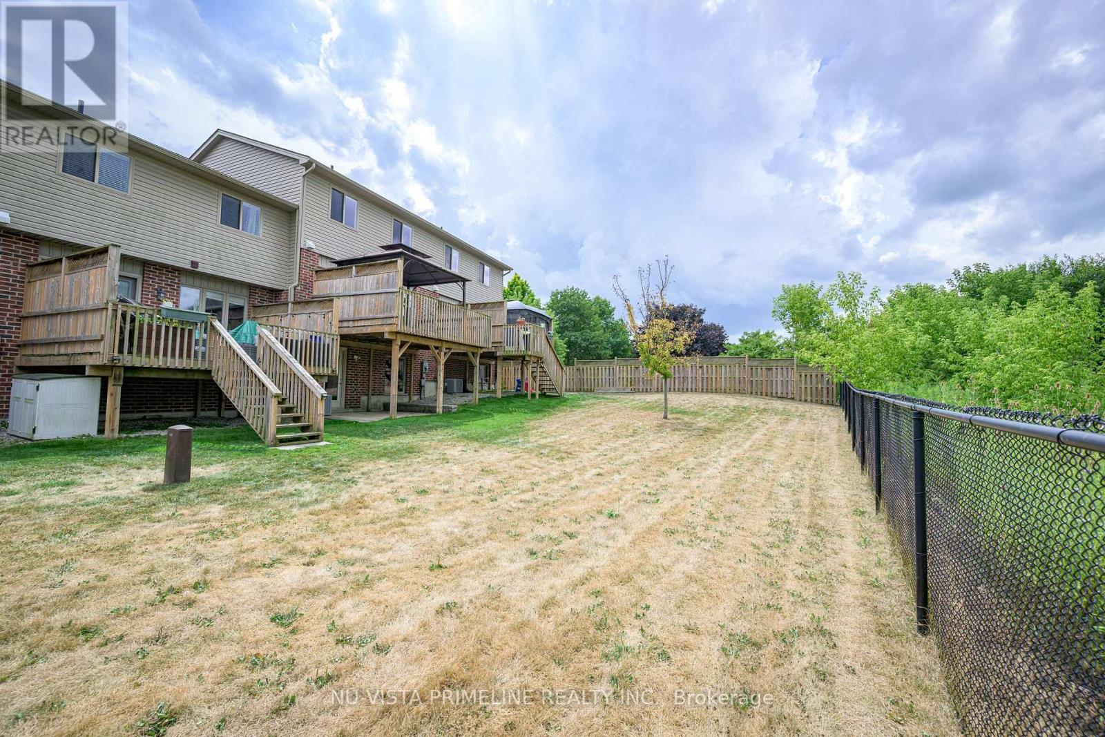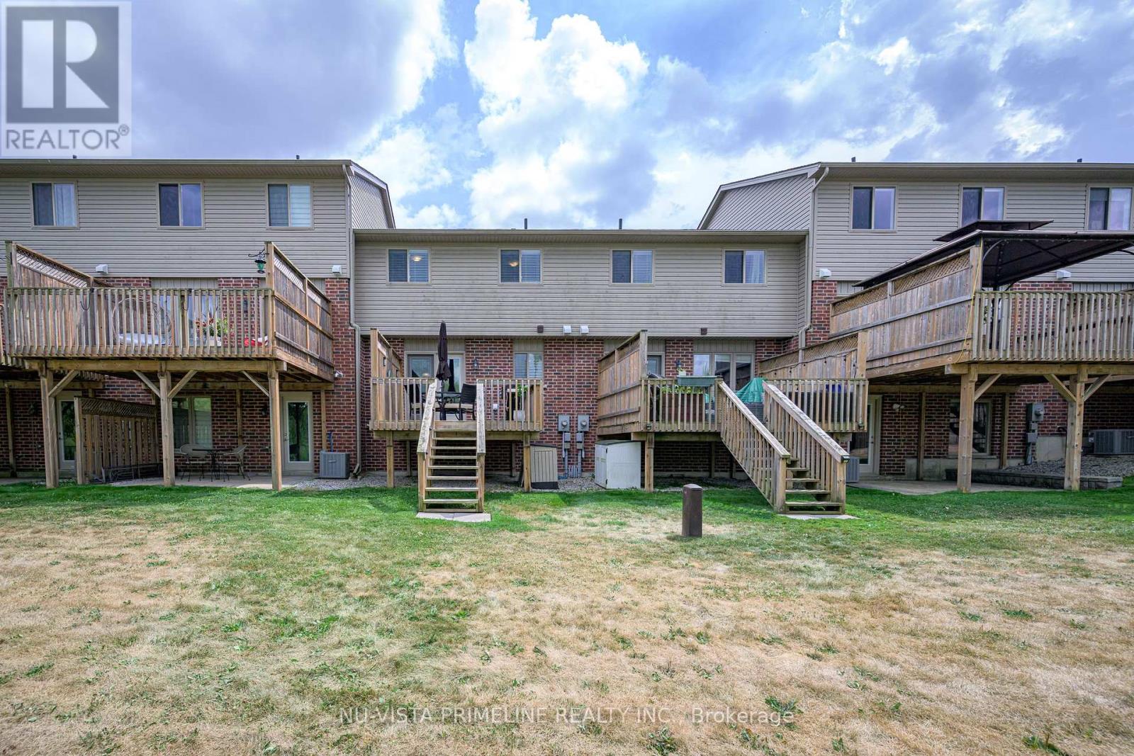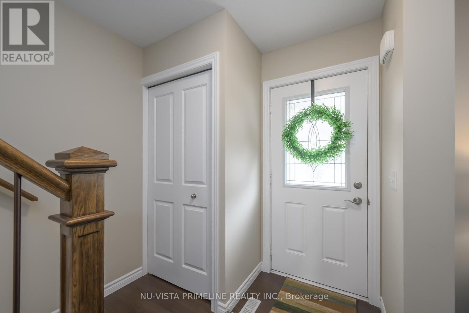 Ideally located in North London's Jacob's Ridge development, this spotless home backs onto a conservation area/RAVINE and walking trails. Enjoy views of the Stoney Creek Valley from your very own deck! Close to Western U, Fanshawe College and top-rated schools such as Stoney Creek Public School and Lucas Secondary School. The beautifully finished interior features laminate flooring in foyer and living room, vinyl and carpet thru out, complemented by a wood and wrought iron banister and railing. The entire unit has been freshly painted in a light, neutral tone. The kitchen boasts quartz countertops, double sinks, under cabinet lighting and plenty of cupboards. A south facing window in the large living area lets natural light flood into the space. Garden doors from the kitchen lead to a private deck offering a peaceful ravine view. Enjoy the convenience of a powder room on the main floor . Upstairs there are three bedrooms. The spacious primary bedroom has a very generous walk-in closet. The pristine main bath has a tub and shower, built-in shelving and a vanity for plenty of storage. Fresh wall-to-wall carpeting adds warmth and comfort to the bright, lower-level family room. Laundry is also on this level as well as rough-in plumbing for a third bathroom. There is plenty of storage too. Attractive stone and brick exterior. Two exclusive use parking spaces are right in front of the unit and there is plenty of visitor parking too. Natural Gas line with Weber BBQ included . Condo fee only $284.00/month. Quality built by Rembrandt Homes. Don't miss out on this lovely move-in ready townhouse. Book your showing today! (id:4069)