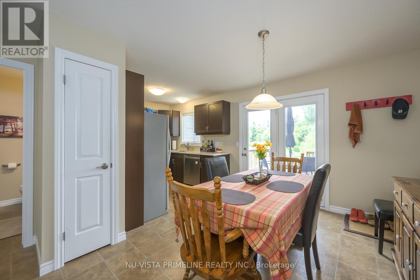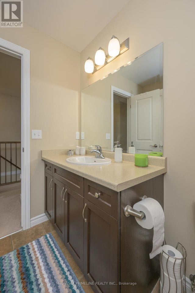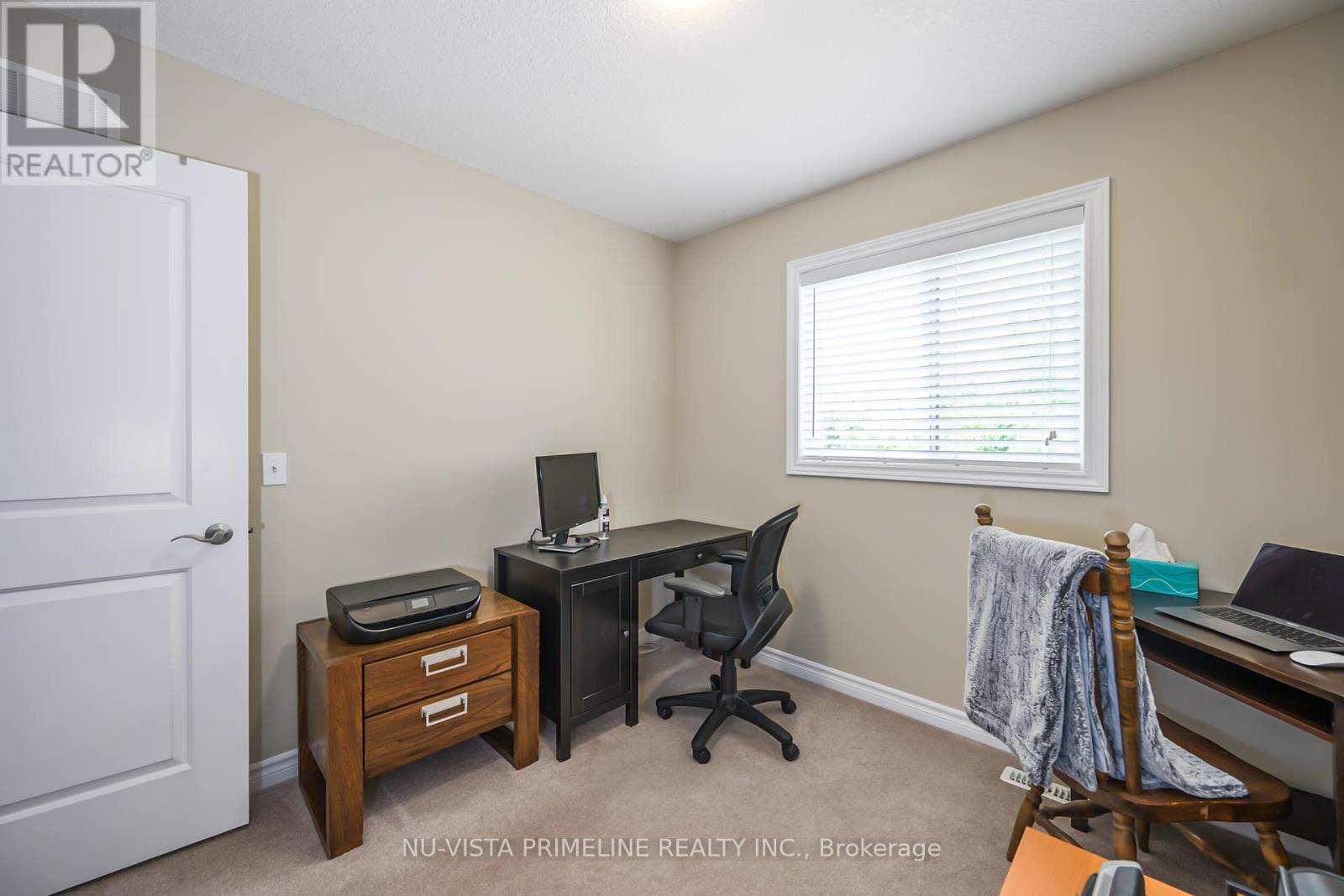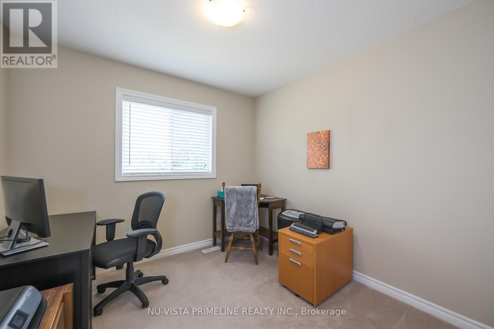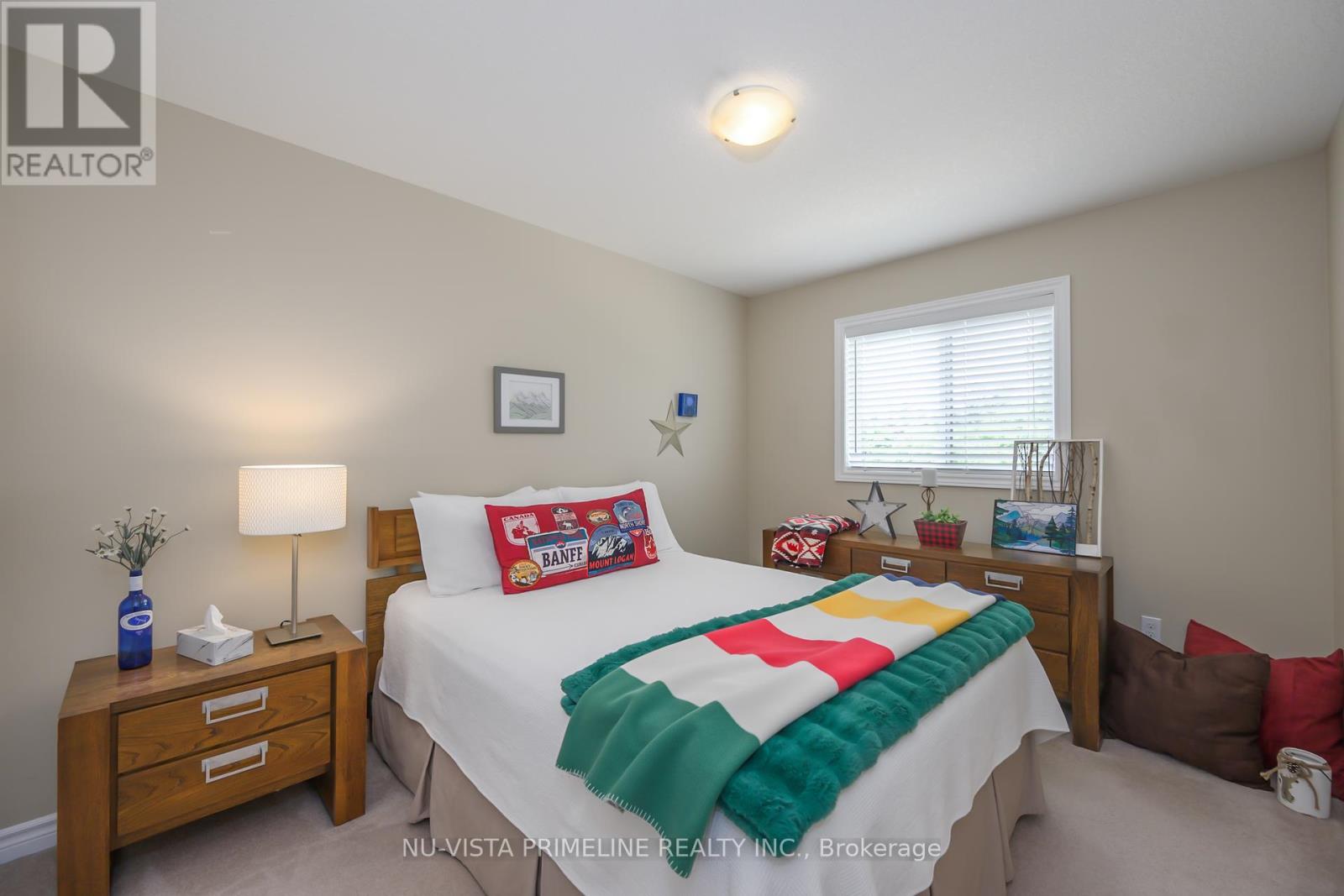 Ideally located in North London's Jacob's Ridge development, this spotless home backs onto a conservation area/RAVINE and walking trails. Enjoy views of the Stoney Creek Valley from your very own deck! Close to Western U, Fanshawe College and top-rated schools such as Stoney Creek Public School and Lucas Secondary School. The beautifully finished interior features laminate flooring in foyer and living room, vinyl and carpet thru out, complemented by a wood and wrought iron banister and railing. The entire unit has been freshly painted in a light, neutral tone. The kitchen boasts quartz countertops, double sinks, under cabinet lighting and plenty of cupboards. A south facing window in the large living area lets natural light flood into the space. Garden doors from the kitchen lead to a private deck offering a peaceful ravine view. Enjoy the convenience of a powder room on the main floor . Upstairs there are three bedrooms. The spacious primary bedroom has a very generous walk-in closet. The pristine main bath has a tub and shower, built-in shelving and a vanity for plenty of storage. Fresh wall-to-wall carpeting adds warmth and comfort to the bright, lower-level family room. Laundry is also on this level as well as rough-in plumbing for a third bathroom. There is plenty of storage too. Attractive stone and brick exterior. Two exclusive use parking spaces are right in front of the unit and there is plenty of visitor parking too. Natural Gas line with Weber BBQ included . Condo fee only $284.00/month. Quality built by Rembrandt Homes. Don't miss out on this lovely move-in ready townhouse. Book your showing today! (id:4069)