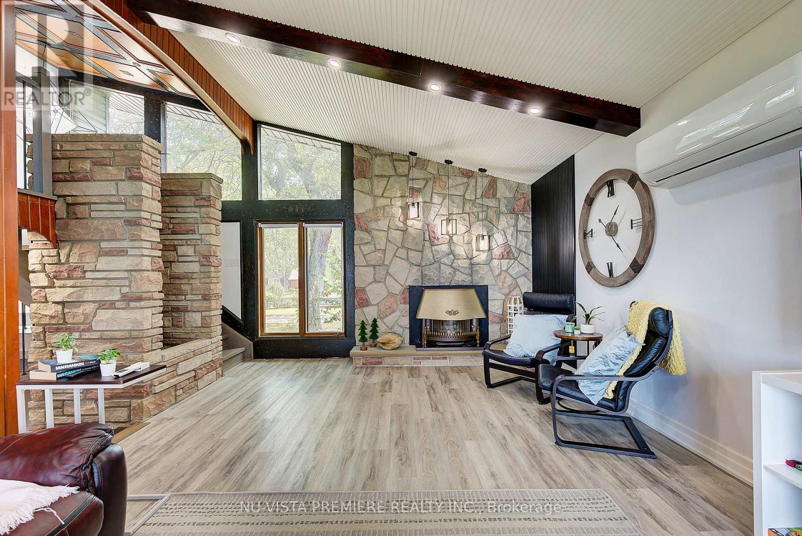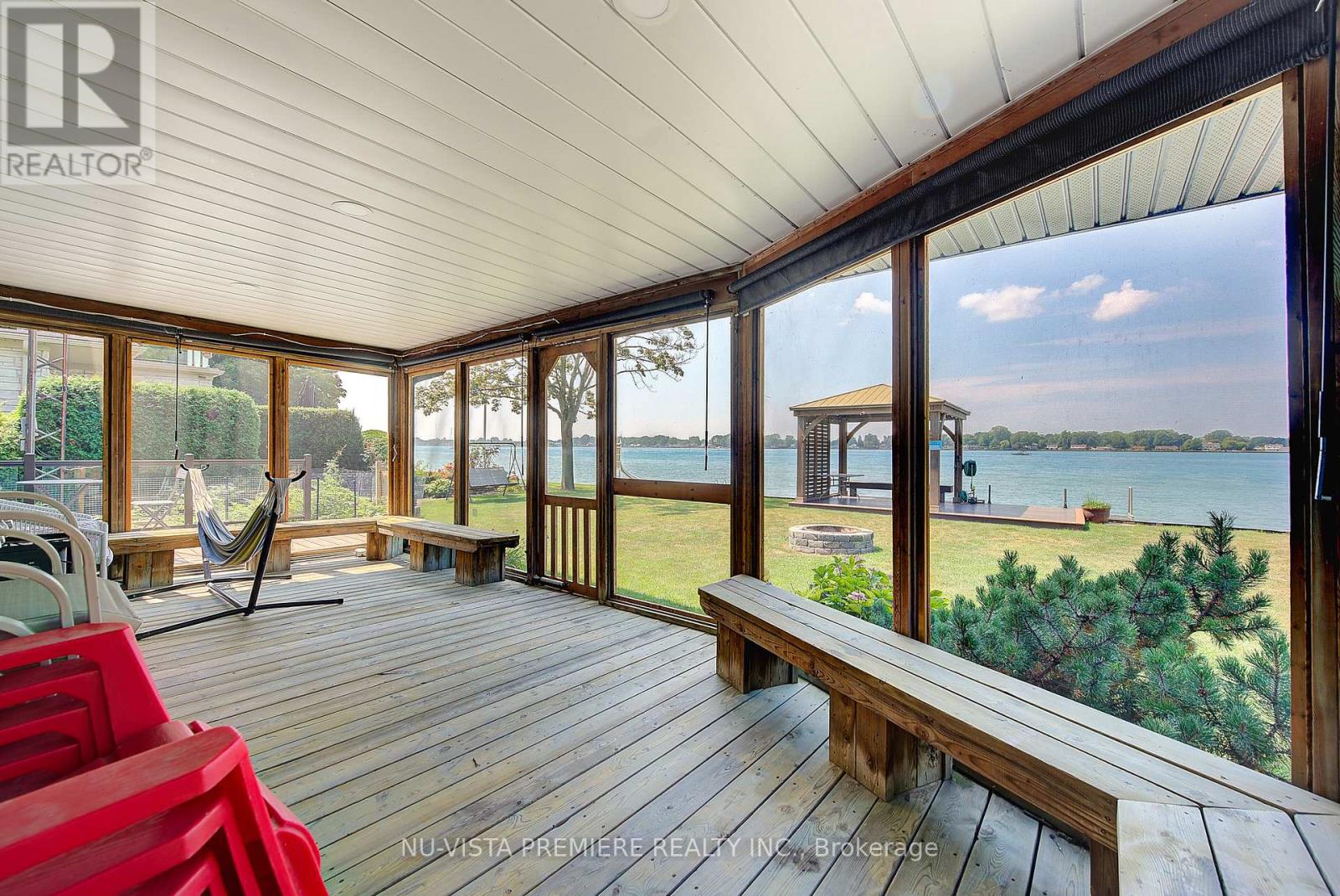 VERY RARE FIND!!! 4-season home located on a small island with only 9 other properties-- making it ultra exclusive! The island is serviced by a municipal bridge and offers high-speed fiber optic INTERNET, gas, city water & city sewers making it an ideal place to either live, retire or cottage. Located close to prestigious Fawn Island, this property features panoramic blue-water views on both sides. It includes a private canal and boat slip with a maintenance-free front-yard deck deck. The 5-level split, mid-century modern plan showcases a striking combination of stone, cathedral ceilings, and natural wood, giving it a truly unique feel. The home has been renovated from top to bottom with tens of thousands of dollars in improvements and updates. Enjoy multiple spaces to take in the water views including a huge screened-in Florida room, a 19ft x 25 ft 2nd floor deck off the primary bedroom with stairway access to the rear yard plus stairs AND a slide into the water, as well as a Gazebo deck (built with maintenance free materials) at the water edge. Inside, the home features 3 good sized bedrooms, 3.5 baths, an updated kitchen, a formal dining room, an additional eating area overlooking the lake, and a spacious great room with cathedral ceilings and a stone gas fireplace. The lower level is fully finished and features a games/family room and a full wine cellar clad in natural brick. Technical features include high efficiency split heat pump units in 2023as well as efficient gas water heating. It is very rare to find a waterfront property with its own protected canal for boat and seadoo docking while still enjoying all the amenities of a city property. Located just 4 km to Sombra, 30 km to Sarnia, 40 km to Chatham and 130 kms to London. Call today to book a private viewing of this spectacular property! (id:4069)