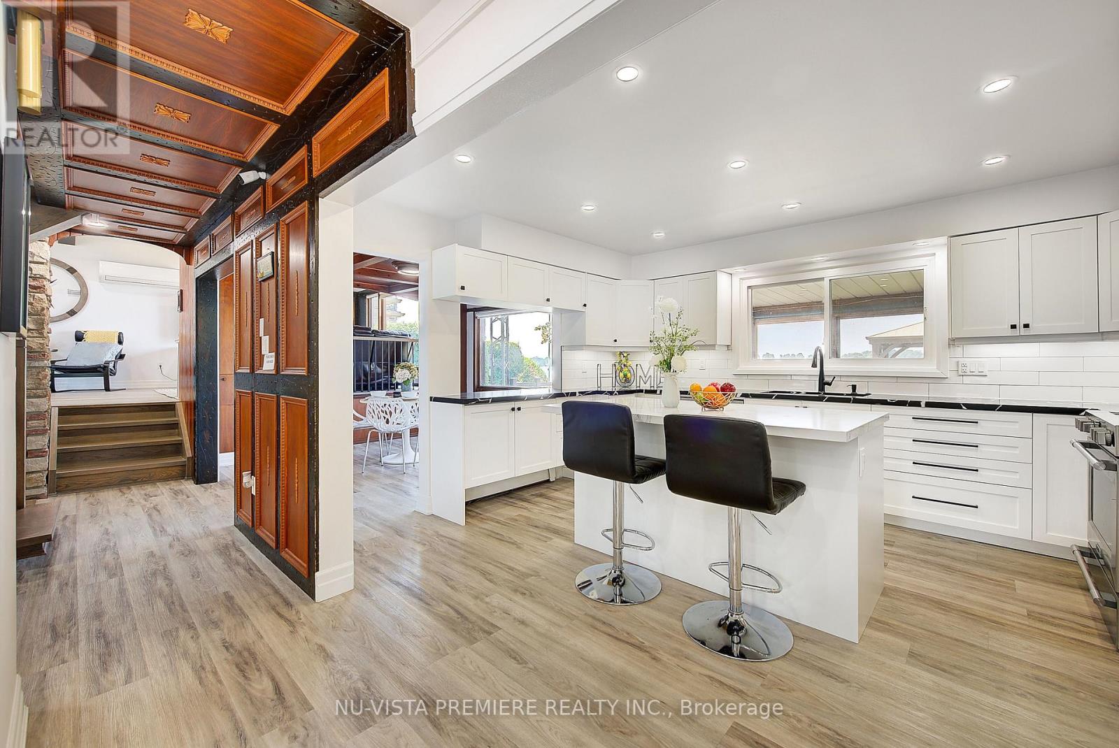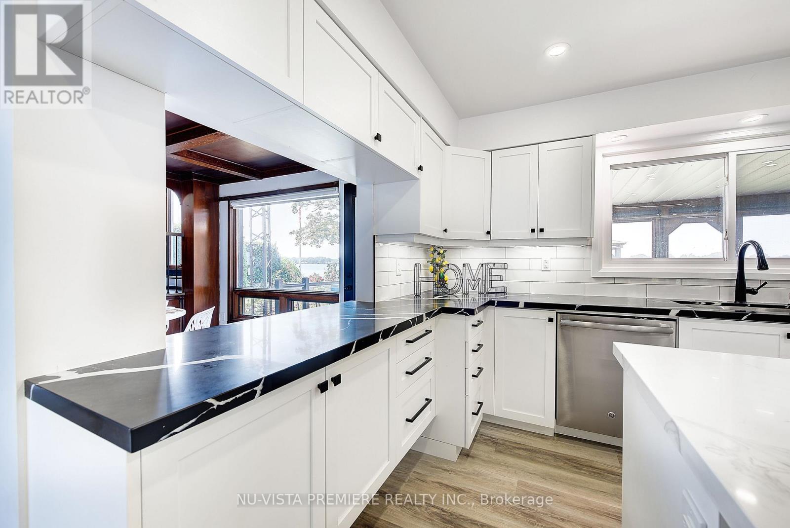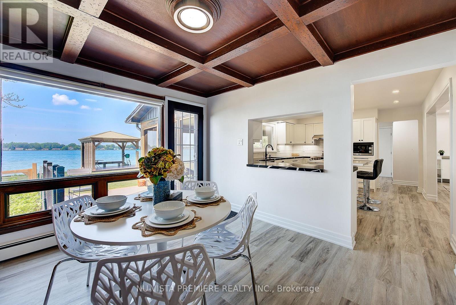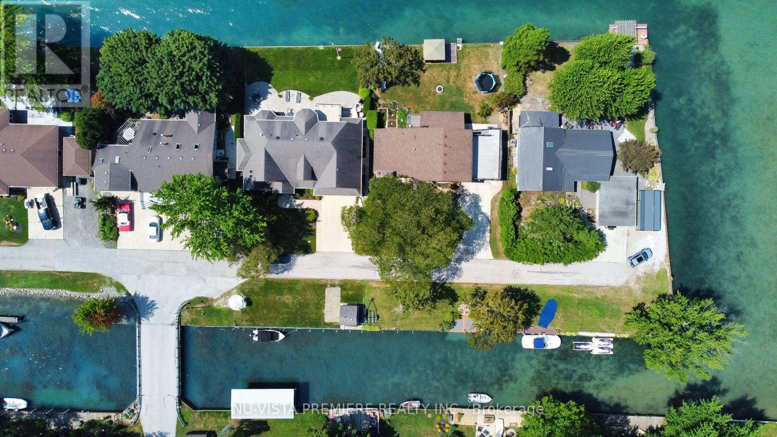 VERY RARE FIND!!! 4-season home located on a small island with only 9 other properties-- making it ultra exclusive! The island is serviced by a municipal bridge and offers high-speed fiber optic INTERNET, gas, city water & city sewers making it an ideal place to either live, retire or cottage. Located close to prestigious Fawn Island, this property features panoramic blue-water views on both sides. It includes a private canal and boat slip with a maintenance-free front-yard deck deck. The 5-level split, mid-century modern plan showcases a striking combination of stone, cathedral ceilings, and natural wood, giving it a truly unique feel. The home has been renovated from top to bottom with tens of thousands of dollars in improvements and updates. Enjoy multiple spaces to take in the water views including a huge screened-in Florida room, a 19ft x 25 ft 2nd floor deck off the primary bedroom with stairway access to the rear yard plus stairs AND a slide into the water, as well as a Gazebo deck (built with maintenance free materials) at the water edge. Inside, the home features 3 good sized bedrooms, 3.5 baths, an updated kitchen, a formal dining room, an additional eating area overlooking the lake, and a spacious great room with cathedral ceilings and a stone gas fireplace. The lower level is fully finished and features a games/family room and a full wine cellar clad in natural brick. Technical features include high efficiency split heat pump units in 2023as well as efficient gas water heating. It is very rare to find a waterfront property with its own protected canal for boat and seadoo docking while still enjoying all the amenities of a city property. Located just 4 km to Sombra, 30 km to Sarnia, 40 km to Chatham and 130 kms to London. Call today to book a private viewing of this spectacular property! (id:4069)